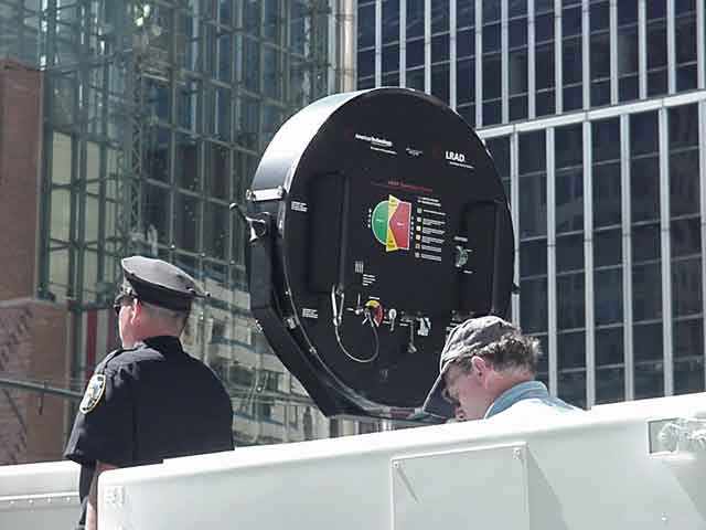 Who would think of using non-lethal beams from the air to enforce civilized behavior?